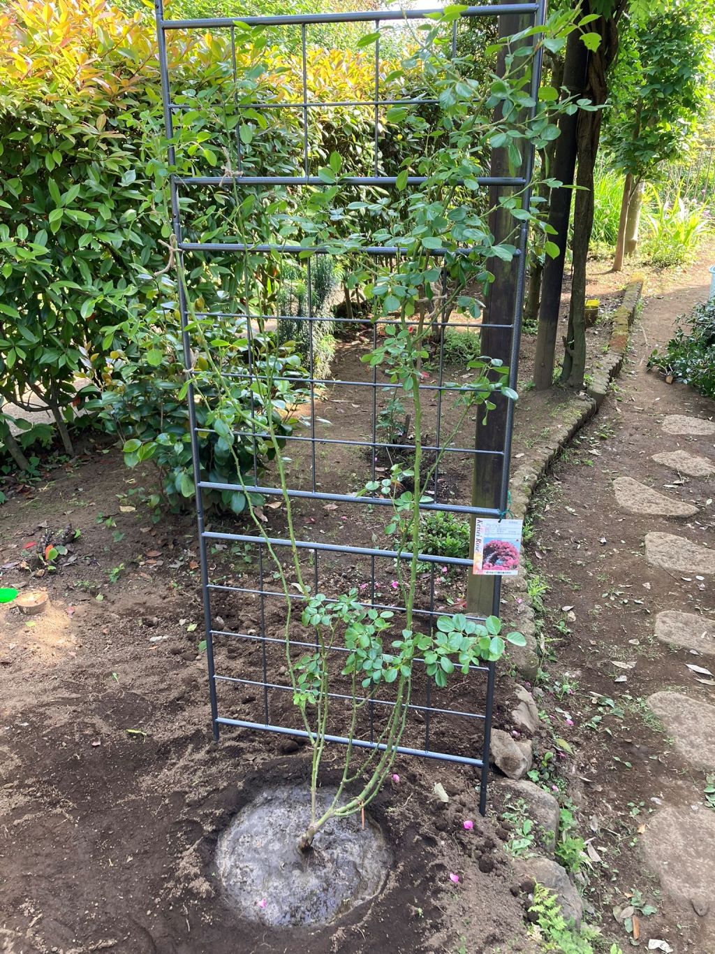 20230521 藤棚へのトレリス設置改造のため、植替え。根がいたむのであまり好ましくないのですが、やむを得ない。