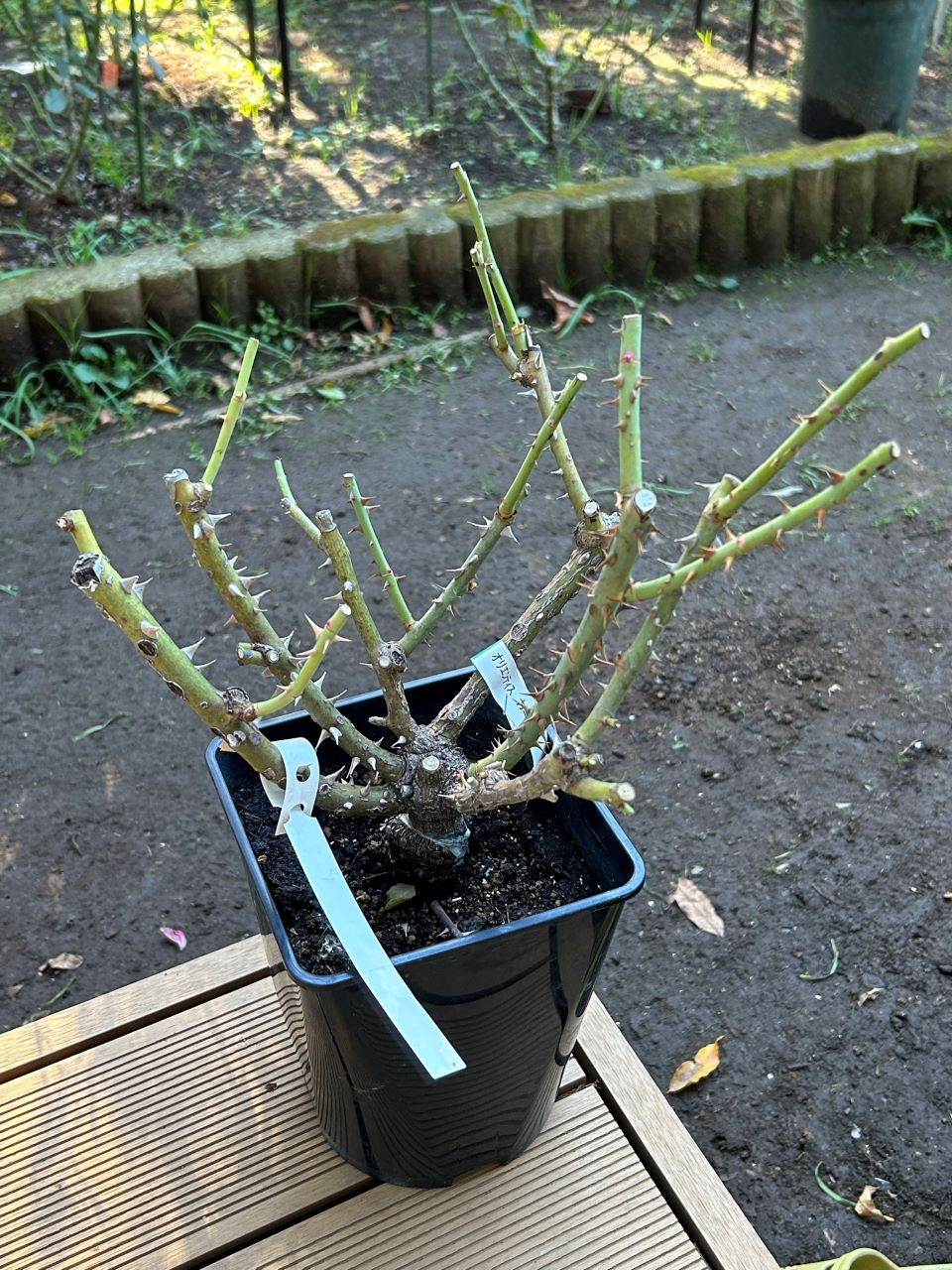 20231118 カミーユ大苗購入。南大沢のザ・ガーデンでロサオリエンティスの切り戻し大苗を入手。つるバラとして成長していた3年目苗を深く切り戻したと思われる。