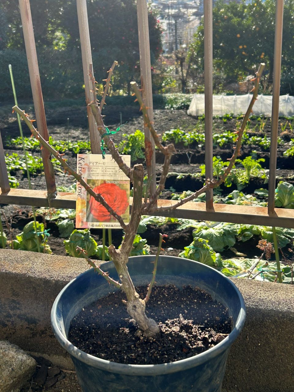 20250109 ティアーモ大苗の11週後。朝の冷え込みが厳しくなり、葉の色も赤くなってきたので、剪定した。