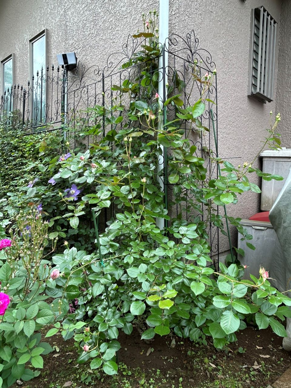 20250509 カミーユ大苗の71週後。大きく伸びた枝先に蕾が膨らむ。