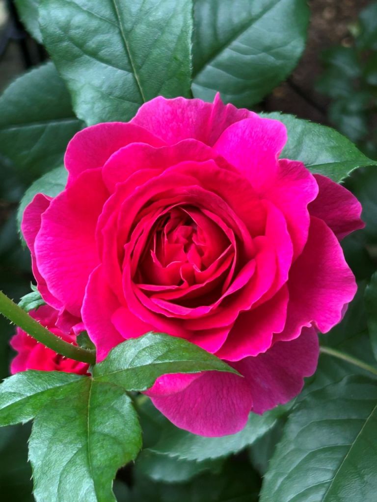 20250515 ガブリエル・オーク大苗74週後。鮮やかな赤い花が開き始めた。