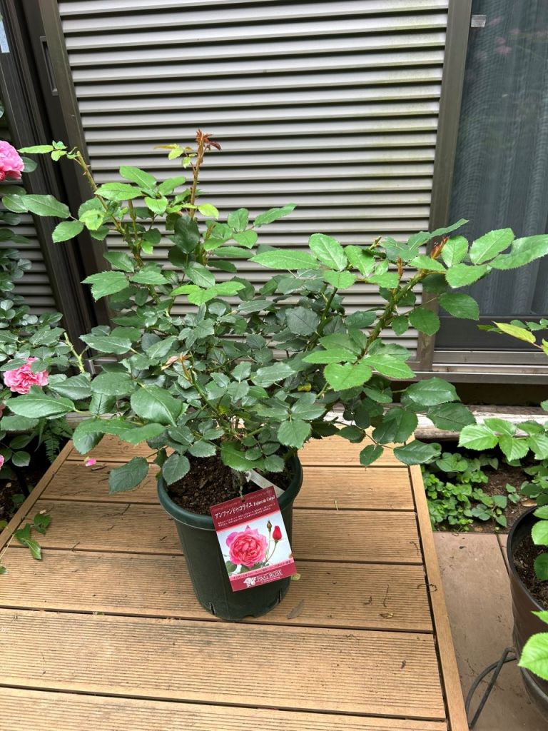 20250525 アンファンドゥコライユ開花苗40週後。樹勢が旺盛で、花枝をカットすると、次の花枝やベーサルシュートが伸びてくる。