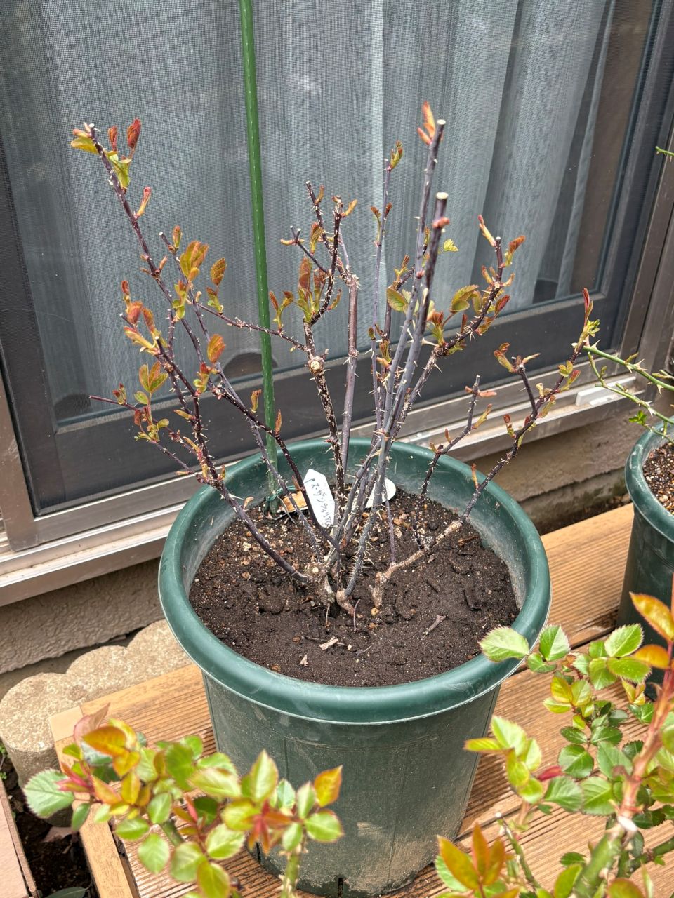 20260305 スーザンウィリアムズエリス冬大苗56週後。赤みを帯びた葉が展開してくる。