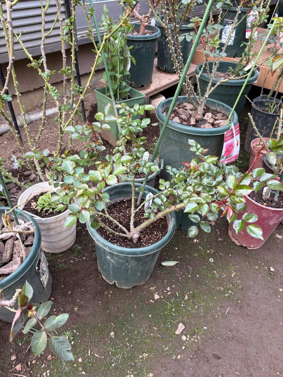 20260324 ローズシナクティフ大苗の6週後。艶のある濃い緑の葉が展開する。