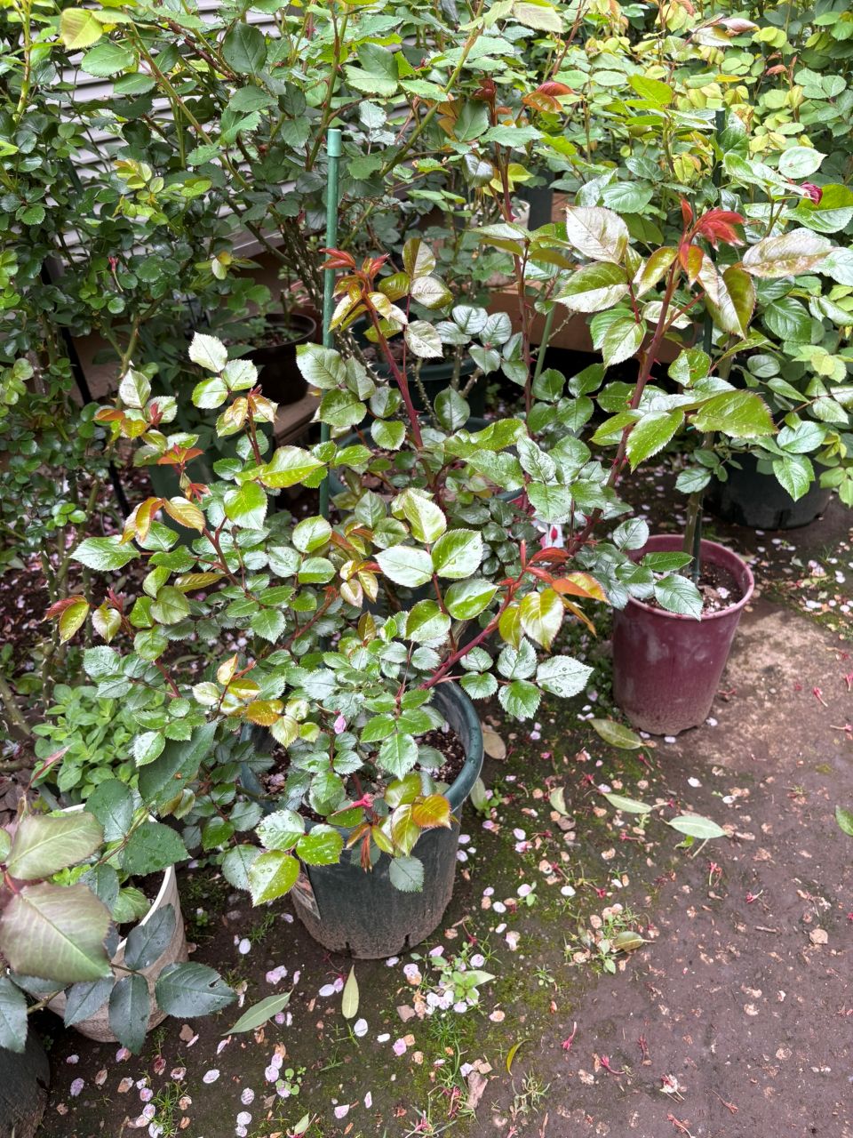 20260410 ローズシナクティフ大苗の9週後。花枝がぐんぐん伸びる。
