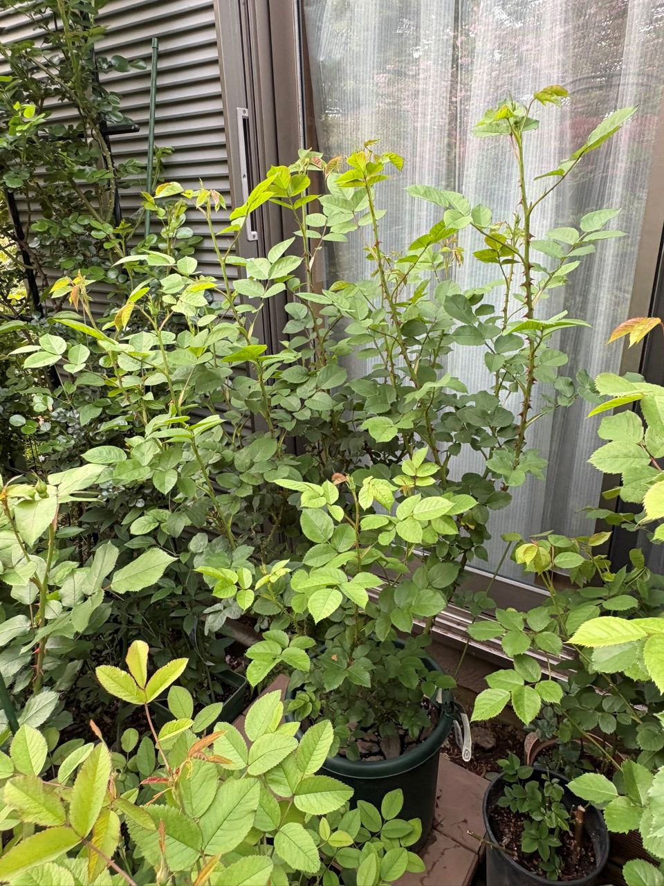20260417 エマ・ブリッジウォーター開花苗の105週後。花枝が上がる。脇芽を除去する。