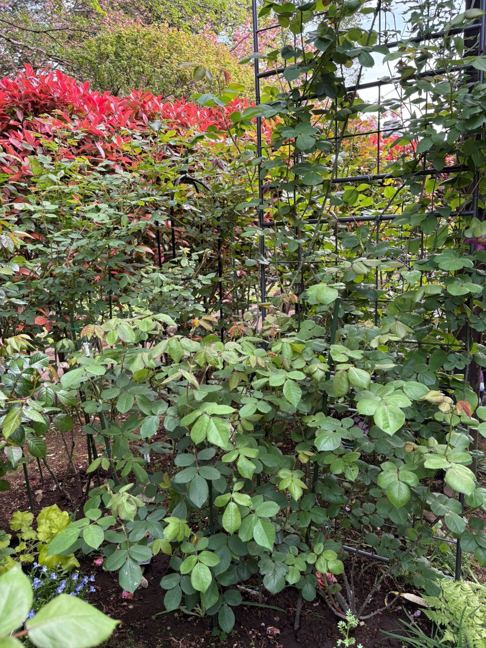 20260417 ガートルード・ジェキル代替苗の124週後。薄くて大きな葉が拡がってくる。