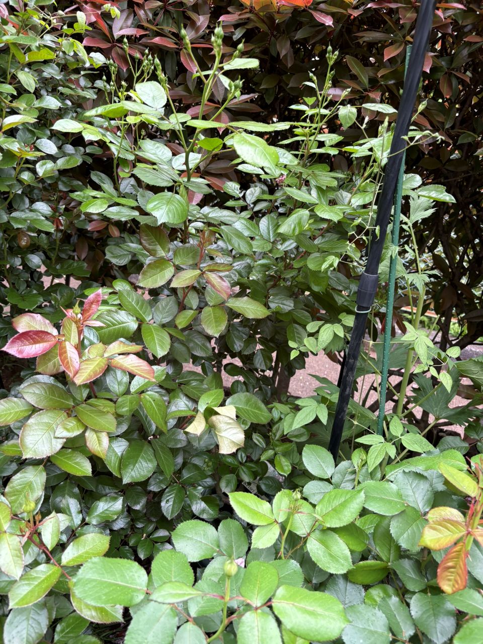 20260423 アンジェラ長尺苗の152週後。パフュームドレスを掘り上げて、代わりにアンジェラを設置した。蕾が上がる。